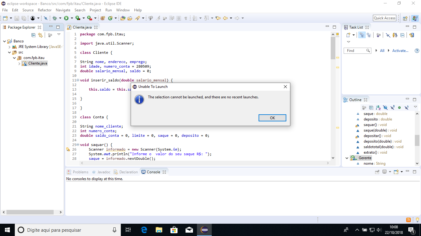 System.out.println("Saldo do cliente " + this.saldo + " limite e de " + limite);