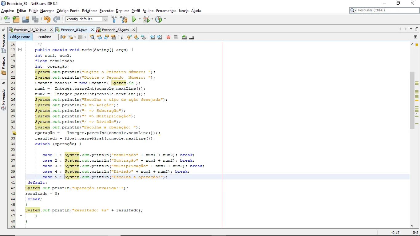 switch (operação) {
