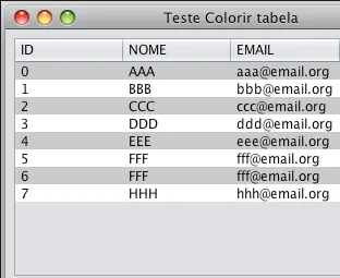 Por favor, alguém consegue me ajudar a colocar cor nas linhas de uma tabela, como neste exemplo abaixo: