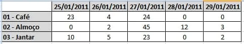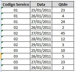 Esta rotina hoje esta em Delphi, usando TClientdataset, na rotina ele monta os campos contatenando com a data (DATA25012011, DATA26012011 …), da um insert para cada Serviço e depois preenche os valores. No momento de persistir no banco ele faz a leitura e preenche a tabela.