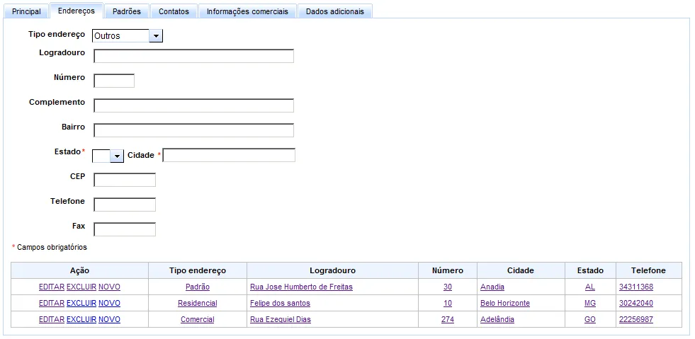 Os estados e cidades já estão cadastrados no BD e utilizo essas tabelas somente para pesquisar.