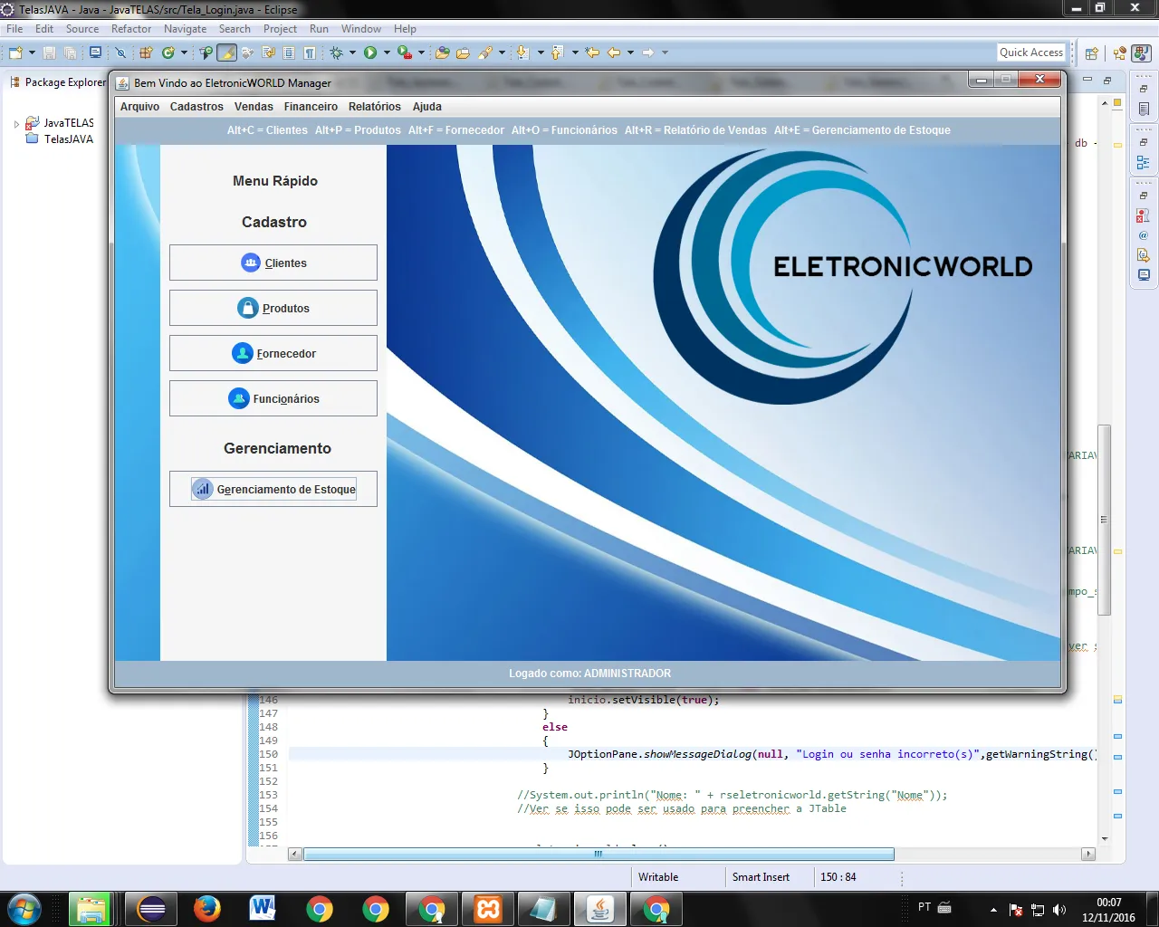 ali onde está escrito : “Logado como : ADMINISTRADOR” eu quero mudar isso, para que cada vez que o funcionário logar, ele entre nessa tela java com o nome do funcionário cadastrado, eu vou passar o código dessa tela java ai