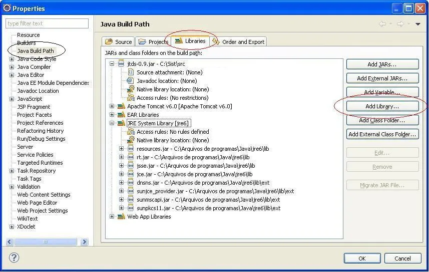 Eu abro o eclipse galileo e ele não reconhece a classe httpServlet. O computador não é o meu, eu sei que o java EE está em uma pasta “sun”. Já tem o tomcat instalado.