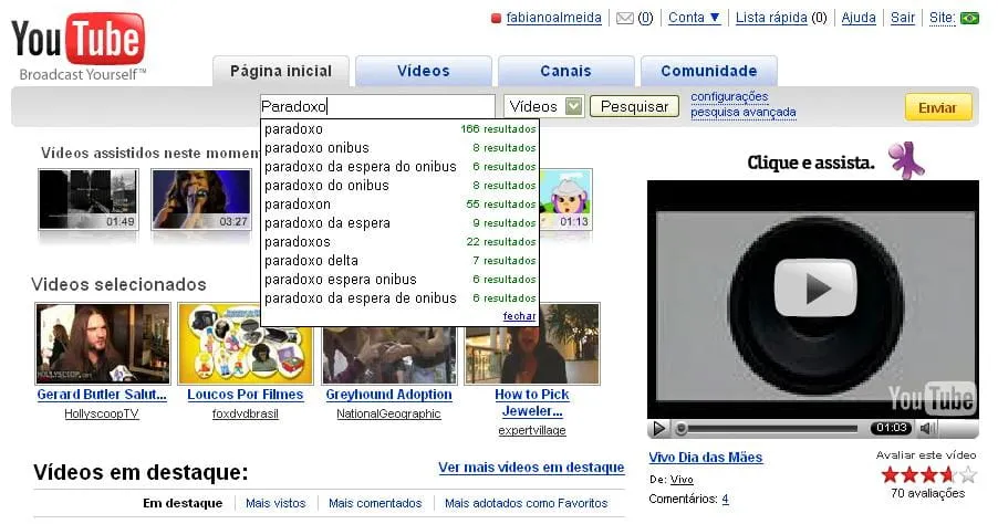 Estive navegando pela internet, especificamente pelo site do Youtube, e vi que eles estão utilizando uma sugestão para a busca de cada usuário.