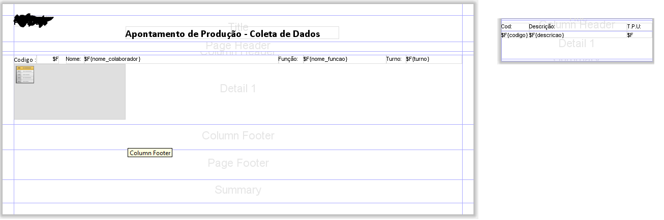 Então, faria um relatório preenchendo a banda details com os dados de cada colaborador e um sub report com os dados da operação.