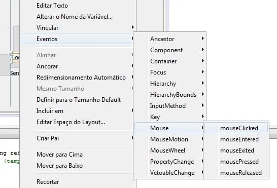 Na ide que eu utilizo NetBeans, existe um Evento chamado mouseClicked