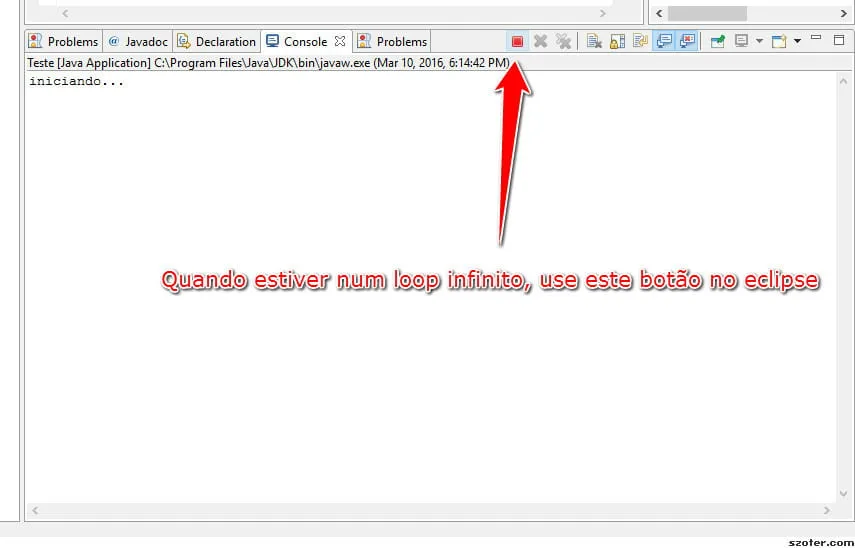 Olá, eu e imagino que muito aqui já tiveram problemas com loopings infinitos, eu gostaria de saber neste tópico se não há algum atalho no teclado para encerrar a execução de um programa java, pois muitas vezes quando ele entra em looping infinito é difícil de acessar o eclipse e encerrar a aplicação.