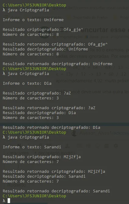 stringDecriptografada = criptografia.decriptografar(stringCriptografada);