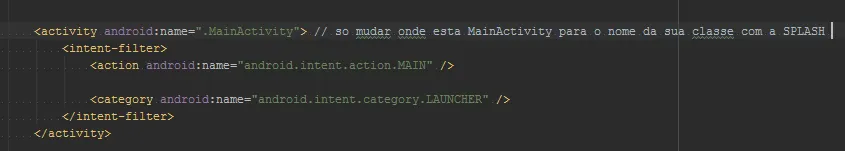 <action android:name="android.intent.action.MAIN" /> //passa ele como MAIN no action