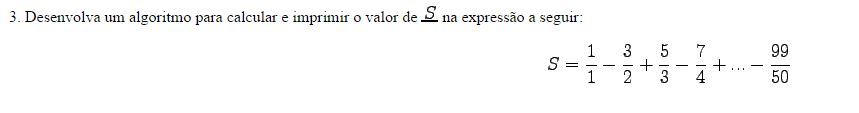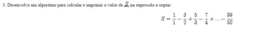 Tente utilizar uma estrutura de repetição (for ou while) com 2 contadores (um para o dividendo e outra para o divisor). Tente também uma variável com valor 1 que a cada iteração você irá multiplicar por -1 para inverter o sinal da equação. (80% respondida, os outros 20% é com você).
