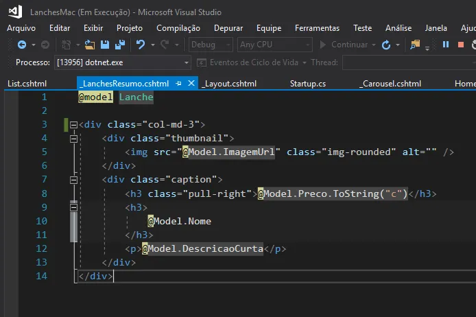 Isso é uma Partial View, então esse bloco todo está dentro de um foreach, então preciso definir o tanto de colunas que eu quero no começo, pra poder formatar para todos…