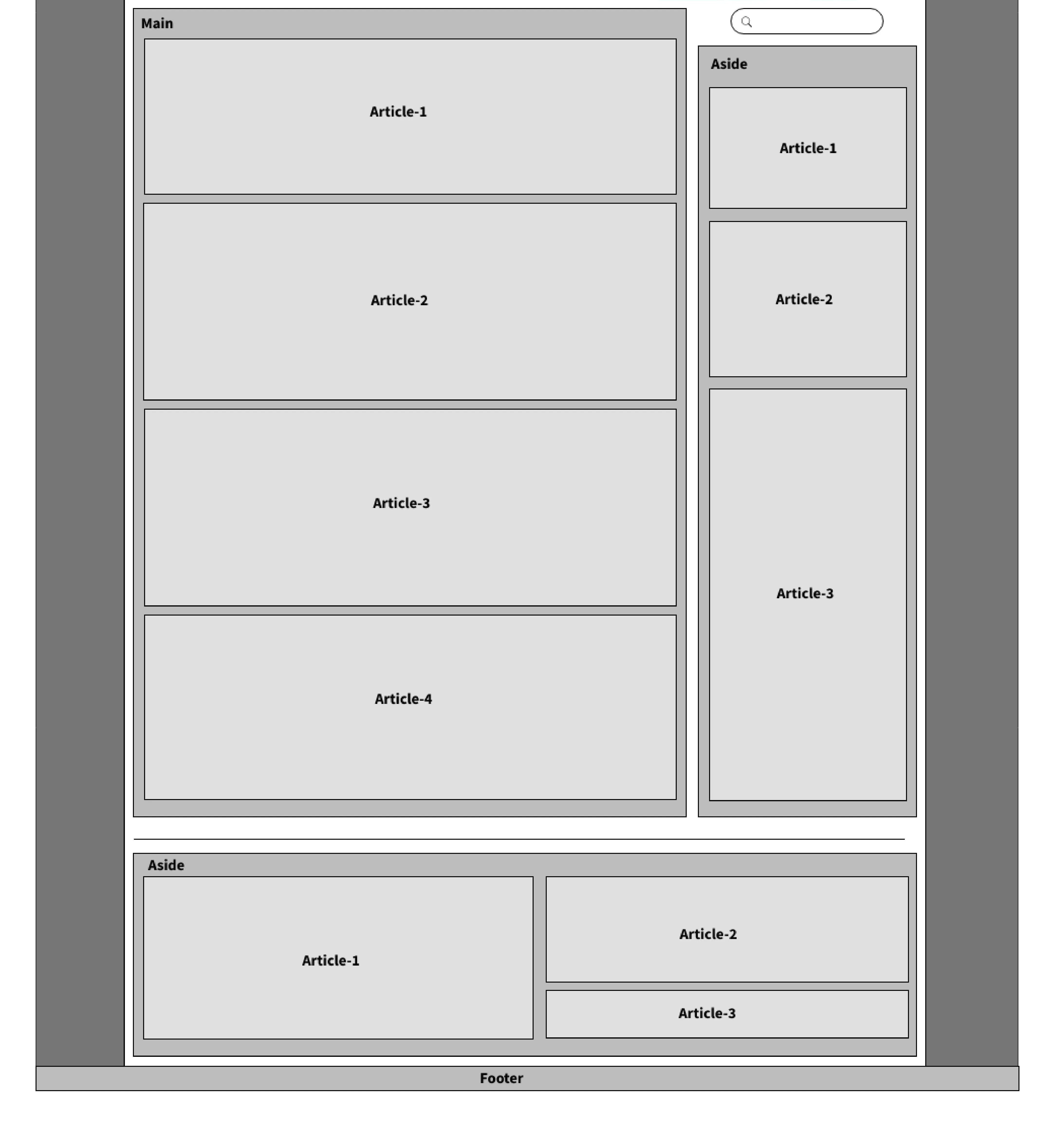 Estou desenvolvendo um projeto para aprendizado e estou com dificuldades em criar um aside para conteúdo periférico em uma barra lateral conforme meu rascunho a seguir:
