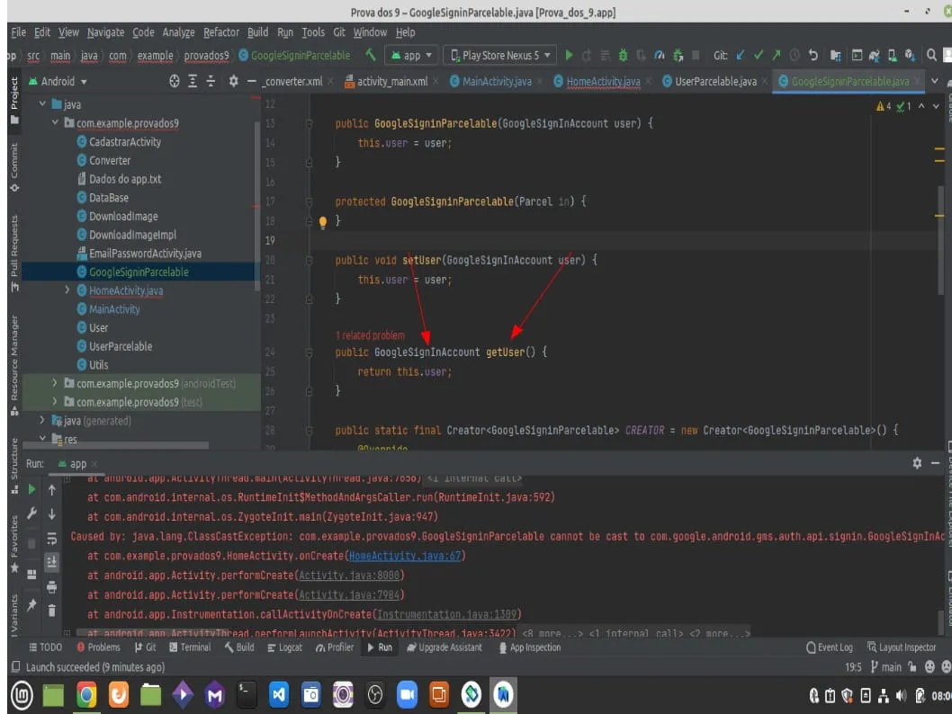 Como Pegar GoogleSignAccount de um Parcelable?