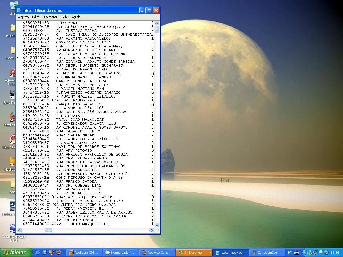 String str = "01254 RAFAEL ANTONIO RUA DOS PRAZERES [telefone removido]";