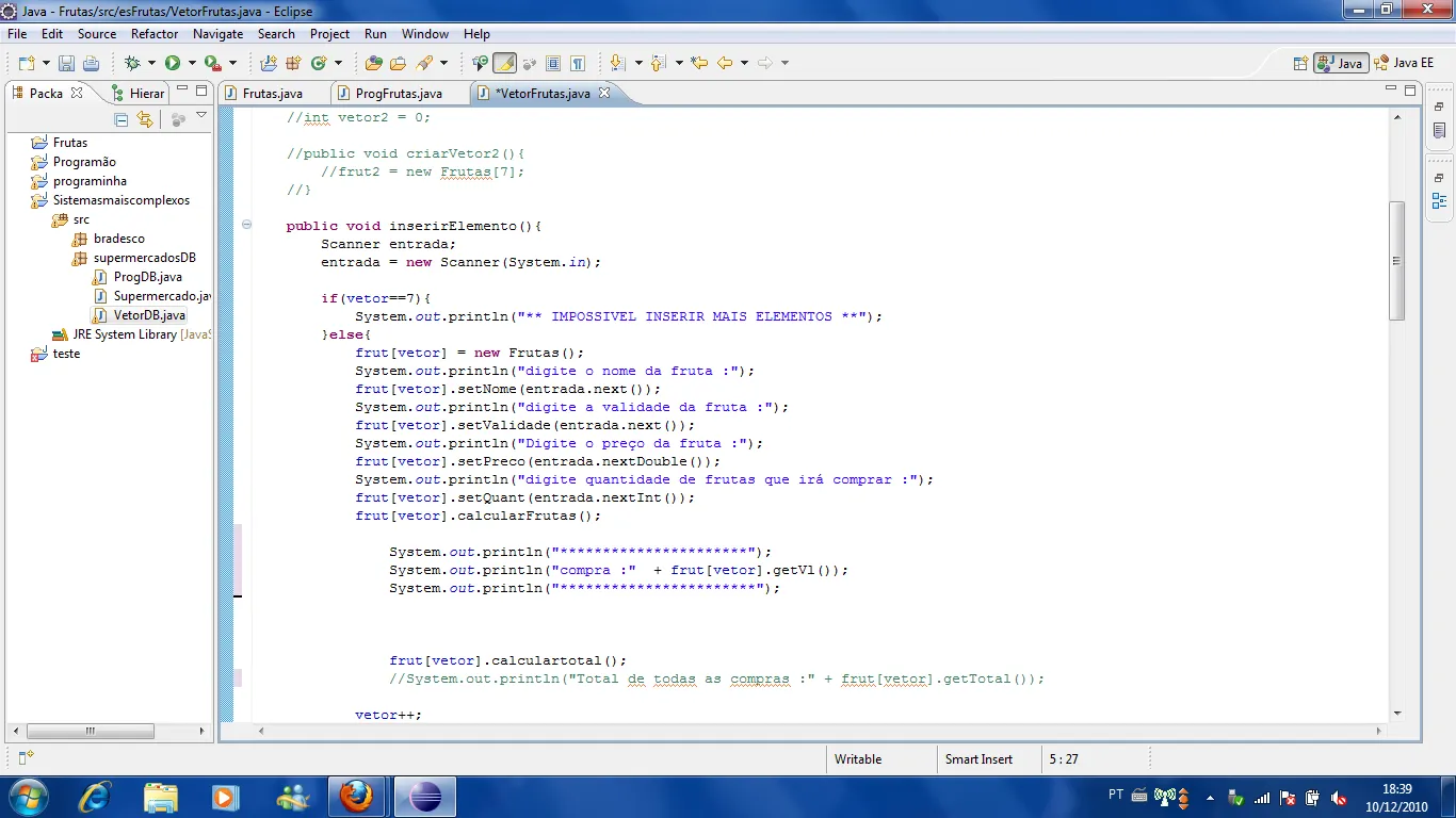 bom eu fiz um arraylist para guardar nas posições , nomes de frutas , data de vencimento , valor do produto e quantidade de compra !