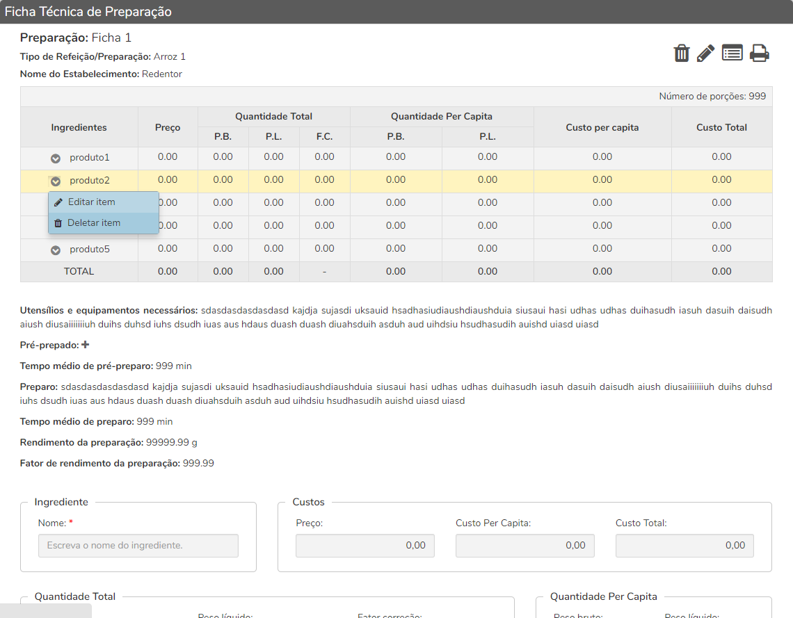 É o seguinte, tenho uma ficha que possui vários produtos.