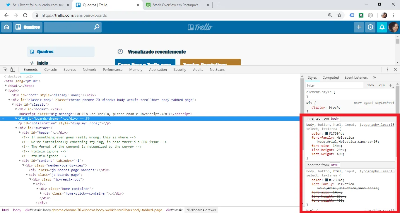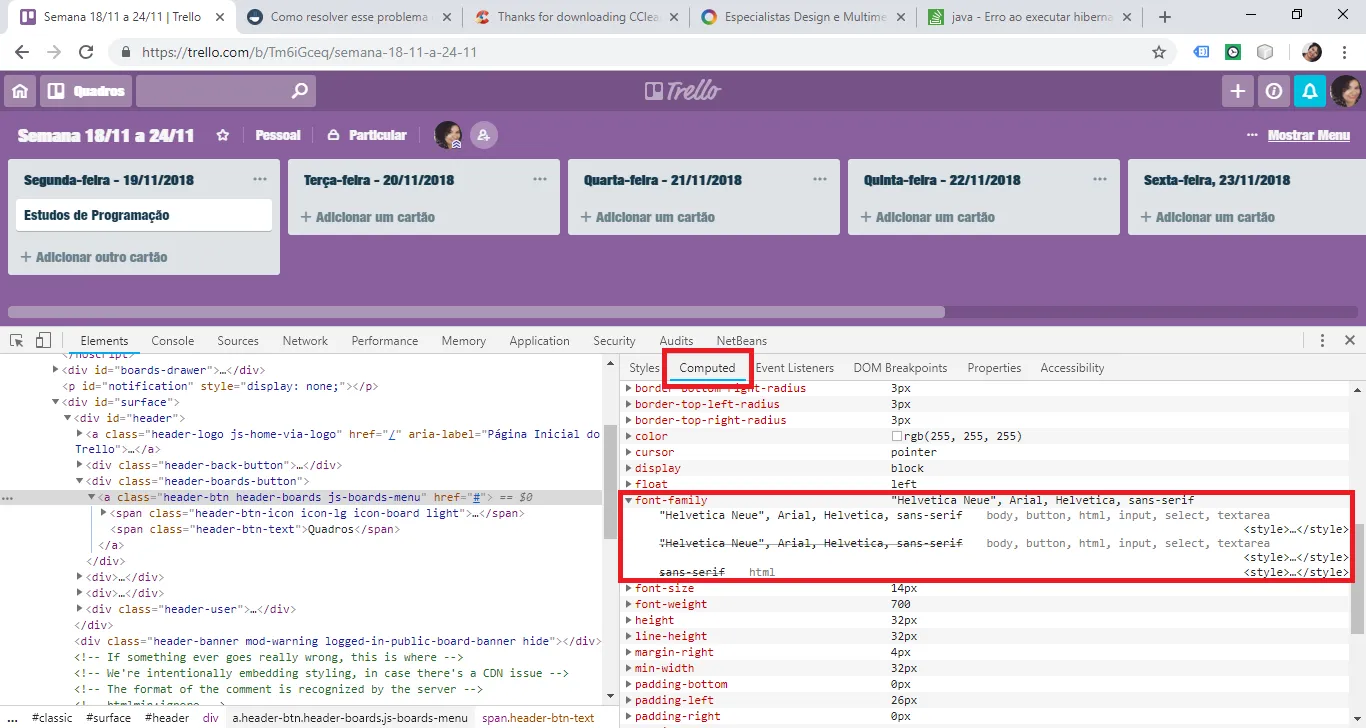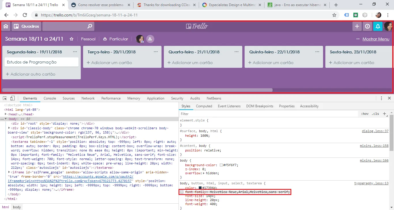 Já faz algum tempo que estou com esse problema e não sei como resolver. Por algum motivo, no meu computador, alguns sites, que eu sei que não tem a fonte assim, pois já vi em outros dispositivos, são renderizados e aparecem com uma fonte horrível e de difícil leitura em qualquer um dos 03 navegadores que tenho instalado aqui(Chrome, FireFox e IE). Olhe essa imagem do Trello: