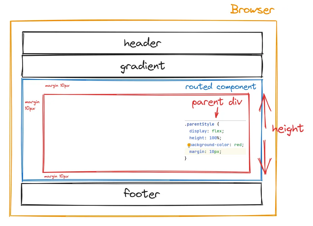 Eu gostaria de entender o comportamento do componente vermelho em relacao ao azul. Ele se restringe nos lados e na parte superior mas na parte inferior ele se extende para além do azul e até para além do footer.