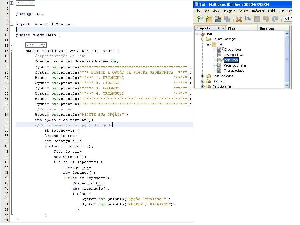 Tenho um programa Main, ele realiza cálculos de figuras geométricas distintas.