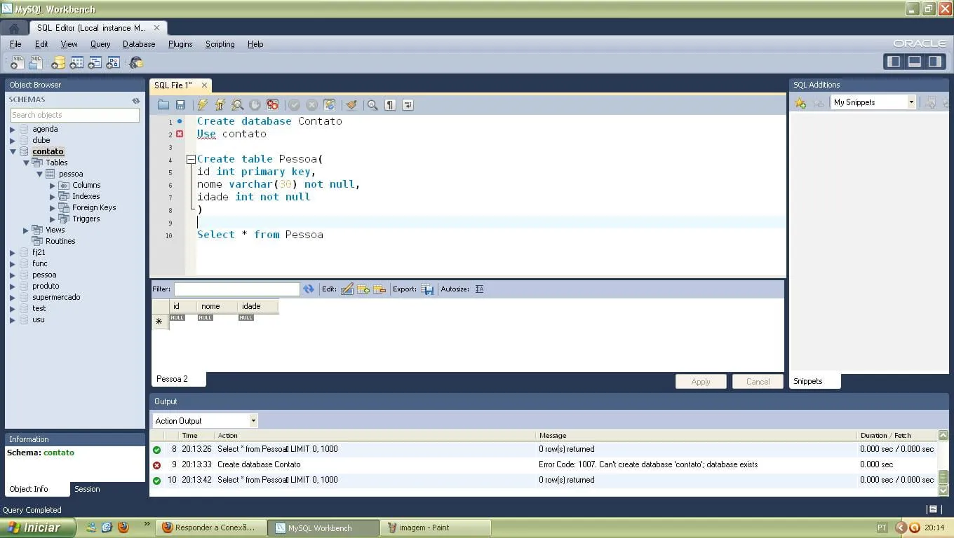 agora está sendo usado sua base de dados para poder criar as tabelas