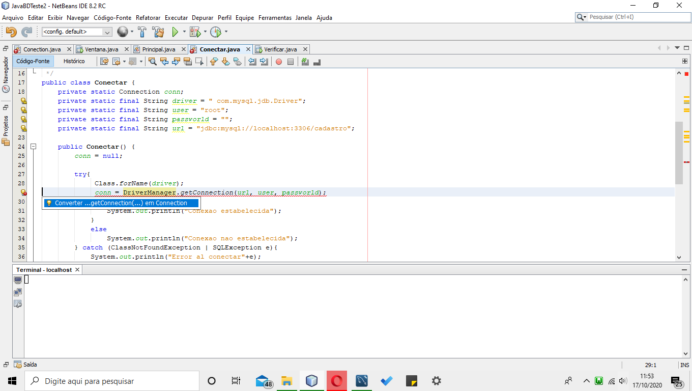 Alguem pode me ajudar? Não sei oque fazer. So preciso de conectar meu javinho lindo no banco.