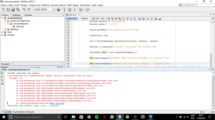 “org.postgresql.util.PSQLException: ERROR: relation “testejava” does not exist”