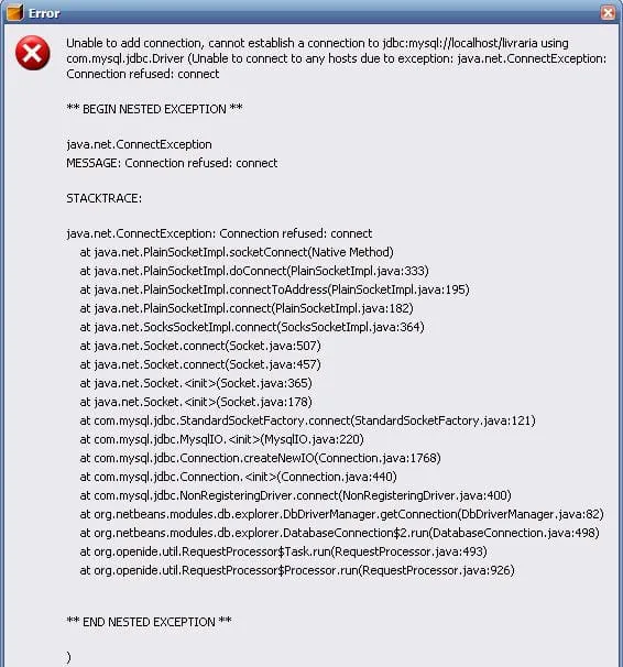 Estive tentando Criar Tabelas no NetBeans mais tive probles e erros me foram apresentados.
