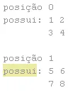 GUJ / Java / Topico Conflito entre Matriz e Vetor 28 de junho de 2016 1 resposta Resolvido Splayer 28 de junho de 2016 Gente como colocar duas Matrizes dentro de um Vetor? Exemplo: Output ??? Alura Desenvolvimento Back-End Java Sua Carreira em desenvolvimento back-end Java: dos fundamentos à arquitetura de sistemas... 1 Resposta W Solucao aceita wenderson.souzza 29 de jun. de 2016 2 likes Tem que informa a posição: Vet[0] = m[0][0] n[0][0]; O índice de ambos começar em 0 Criado 28 de junho de 2016 Ultima resposta 29 de jun. de 2016 Respostas 1 Participantes 2 Topicos relacionados Como saber se um mes tem 4 ou 5 semanas?[RESOLVIDO] 31 respostas Como converter inteiro para string! 13 respostas Comando SELECT para selecionar intervalo de data SQL SERVER 12 respostas &, &&, |, ||. Qndo usar? 6 respostas O método split 12 respostas Alura POO: o que é programação orientada a objetos? Aprenda os conceitos básicos da programação orientada a objetos, como classes, objetos, herança, encapsulamento e polimorfismo, com exemplos. Casa do Codigo Inteligencia Artificial e ChatGPT: Da revolucao dos... Por Fabricio Carraro — Casa do Codigo