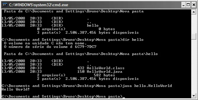 até aí tudo bem. salvo o arquivo .java, aí vou no no prompt do windows e executo o comando (com ou sem extensão)