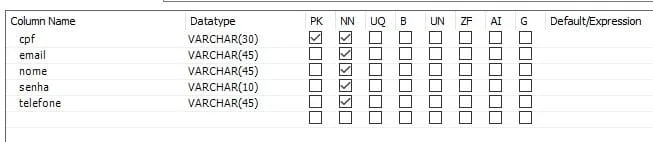 Observação: A coluna USUARIO_CPF é uma FK mapeada em meu código com @ManyToOne e @OneToMany.