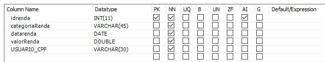Tenho uma coluna USUARIO_CPF na minha tabela Renda, como ficaria o restante do código?