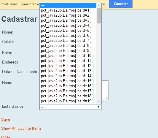 Sim … faz assim post o codigo dessa classe Bairro por gentileza. Tá dando algum erro no console do eclipse/netbeans?