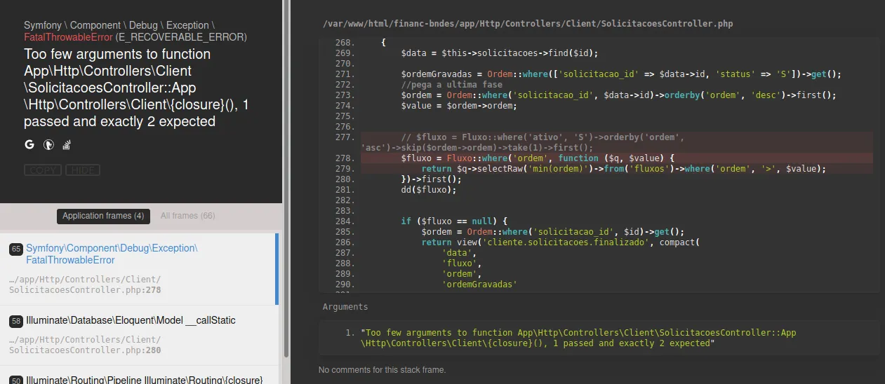 Boa tarde! Estou tentando fazendo uma consulta com where Eloquent laravel, mais não to conseguindo passar mais de um parâmetro na function, segue o código e o erro.