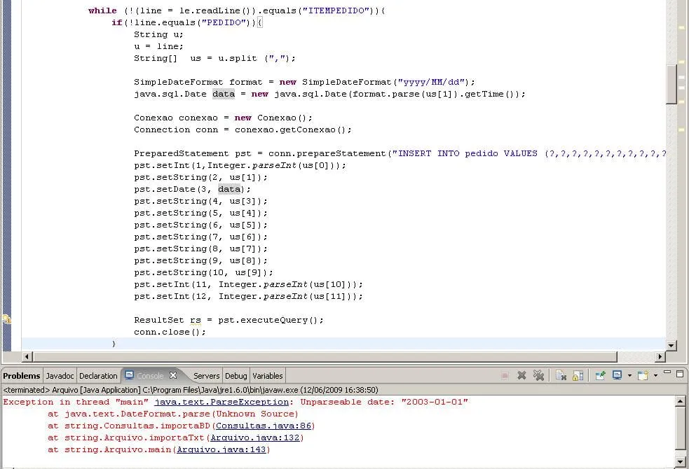 Essa data, estava do mesmo formato no banco. =) O que é mais estranho ainda, porque se estava dessa forma, deveria importar =/</blockquote> No seu .TXT as datas estão todas no padão yyyy-MM-dd certo? E se vc fizesse o seguinte: muda a mascara do SimpleDateFormat para (“dd/MM/yyyy”); pega o vetor us[1] e faz:String aux = format.format(us[1]);Agora, vc faz um parse no java.sql.Date: