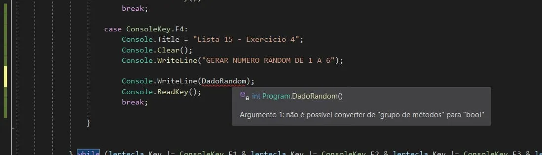 Mas na hora de invocar o metodo DadoRandom, apresenta o seguinte erro:
