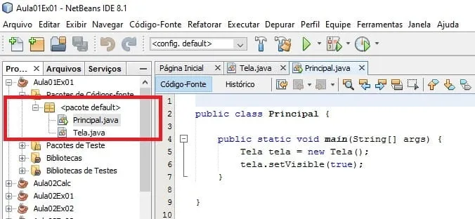 Advertência: é altamente recomendado que você não coloque classes Java no pacote default.