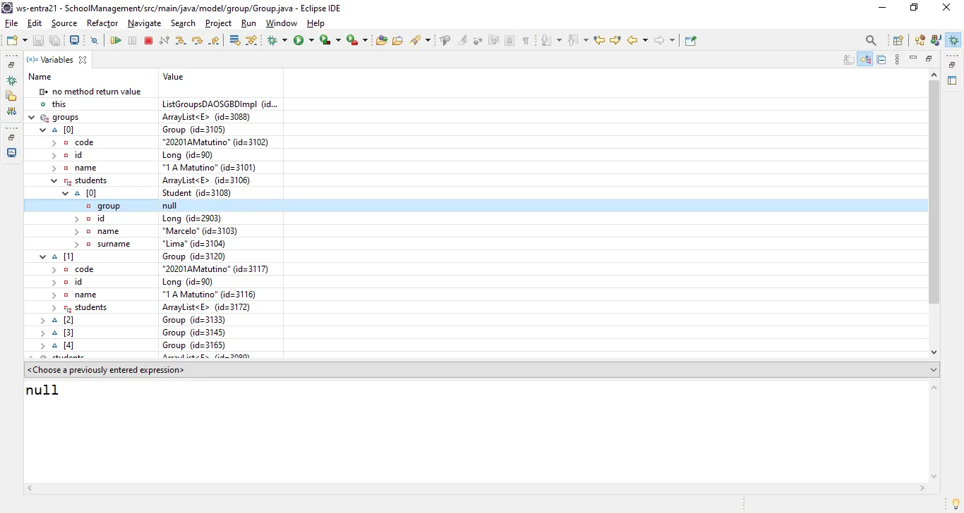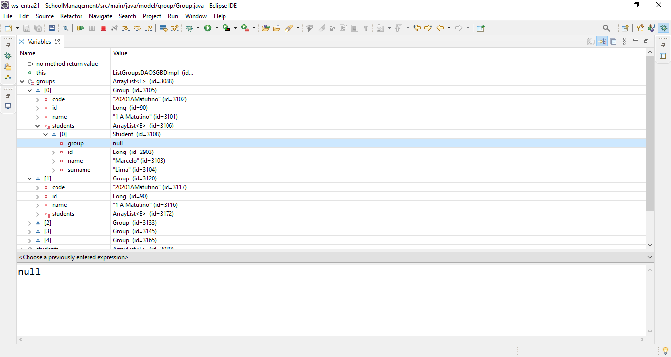 * public Group(Long id, String name, String code, ArrayList<Student> students)
