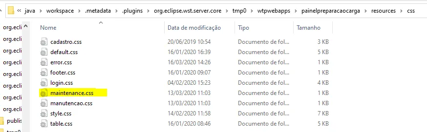 Quando clico no caminho do CSS no HTML pelo Eclipse, o CSS é aberto. Mas em tempo de execução não está encontrando. Tenho outros HTML nesse mesmo projeto que o CSS é carregado certinho.