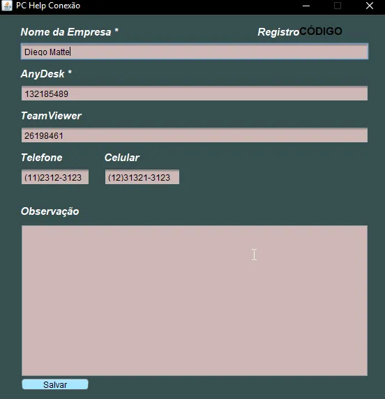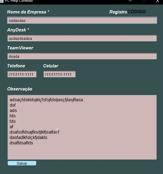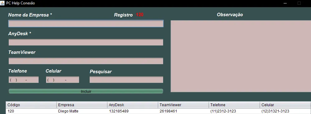 "Ops,você não inseriru dados da Empresa e do AnyDesk! \nPor favor Verifique!", "Aviso",