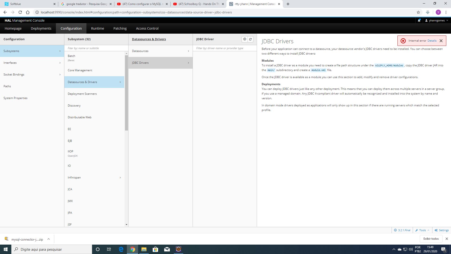 Opa galera, beleza? minha primeira vez postando aqui, algum de vocês já teve esse problema? sabem como resolver? (internal error newvalue is null) no wildfly, eu usei o h2 como ponte para o mySQL no Wildfly, fiz todos os procedimentos com o xml e no final resultou nesse erro…