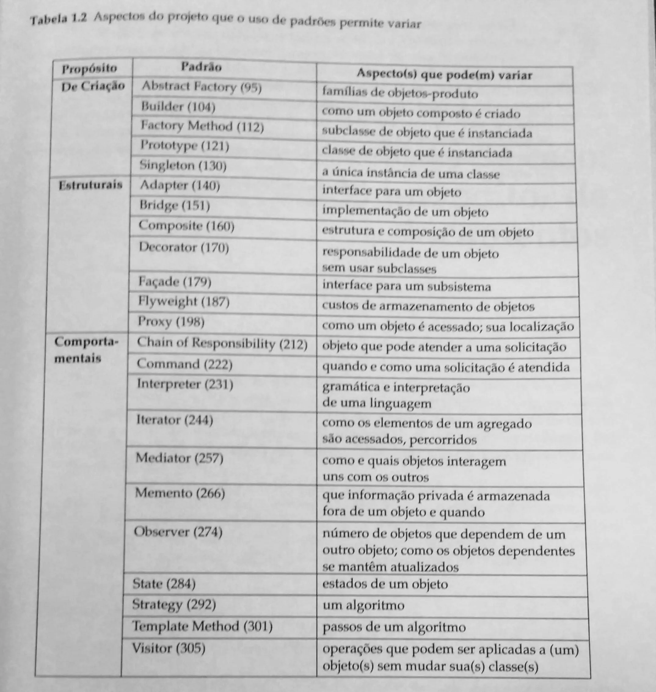 A tabela abaixo pode ser útil pra ajudar a lembrar a finalidade de cada um dos padrões: