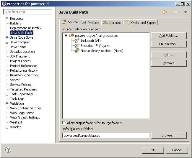 Encontrei uma coisa no meu java build path que não sei o que é, ele está excluindo os meus arquivos *.java