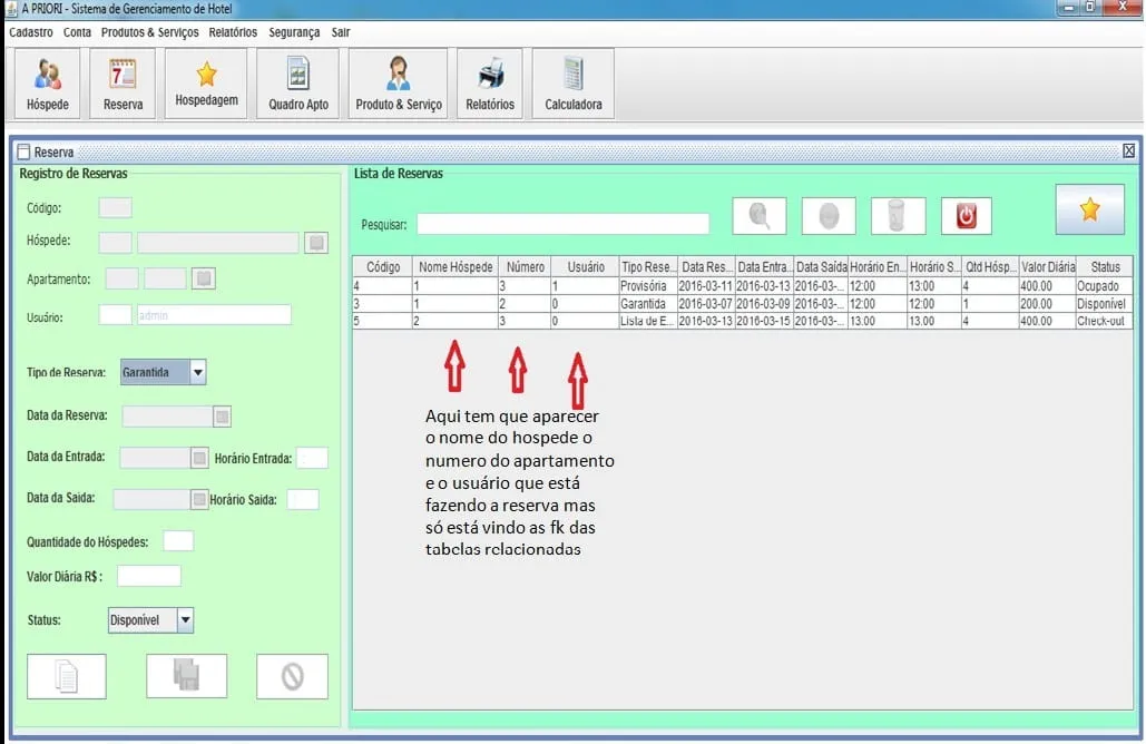 "Código", "Nome Hóspede", "Número","Usuário", "Tipo Reserva", "Data Reserva",