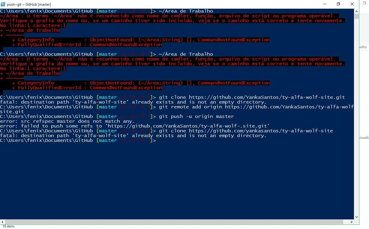 Dificuldade em subir arquivos pro github