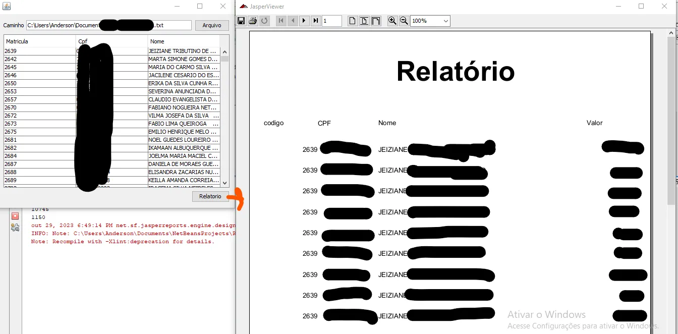 Fala gente, tenho uma Lista vindo da importação de um Arquivo TXT, e ja consigo emitir relatorio por um Botao que tenho na Tela (Java Swing), minha dificuldade é fazer o relatorio emitir apenas um funcionario ou um grupo de funcionario.