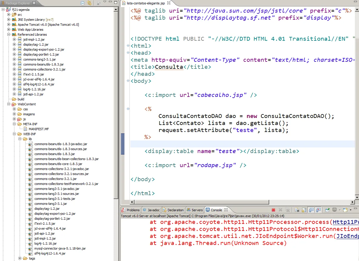 ja fui no google, digitei http 500 displaytag e fui em todas as procuras, nenhuma delas resolveu meu caso… alguem sabe o que posso estar fazendo de errado?