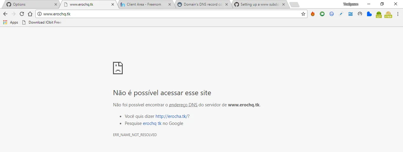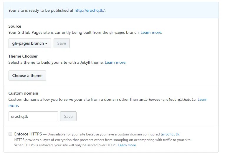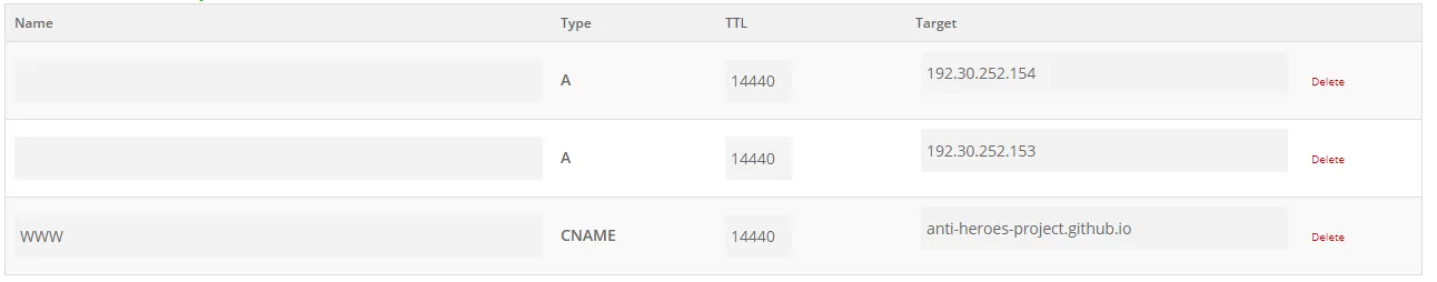 Olá, eu estou tentando configurar um domínio personalisado em um site no github pages. Adicionei o domínio, criei o arquivo CNAME e configurei os records, mas não está funcionando o site pelo domínio e eu vejo essa mensagem nas configurações do meu repositório: