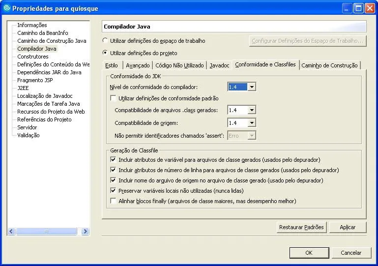 Como eu faço para alterar o nível de compilação dos arquivos no IBM RAD 6.0?