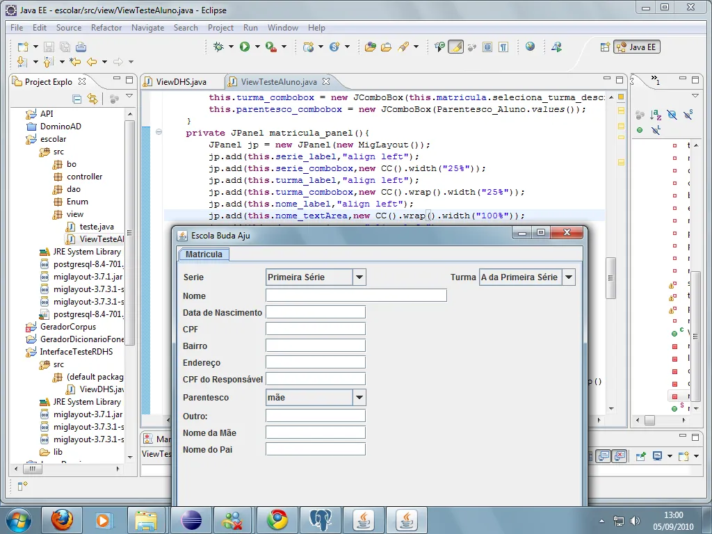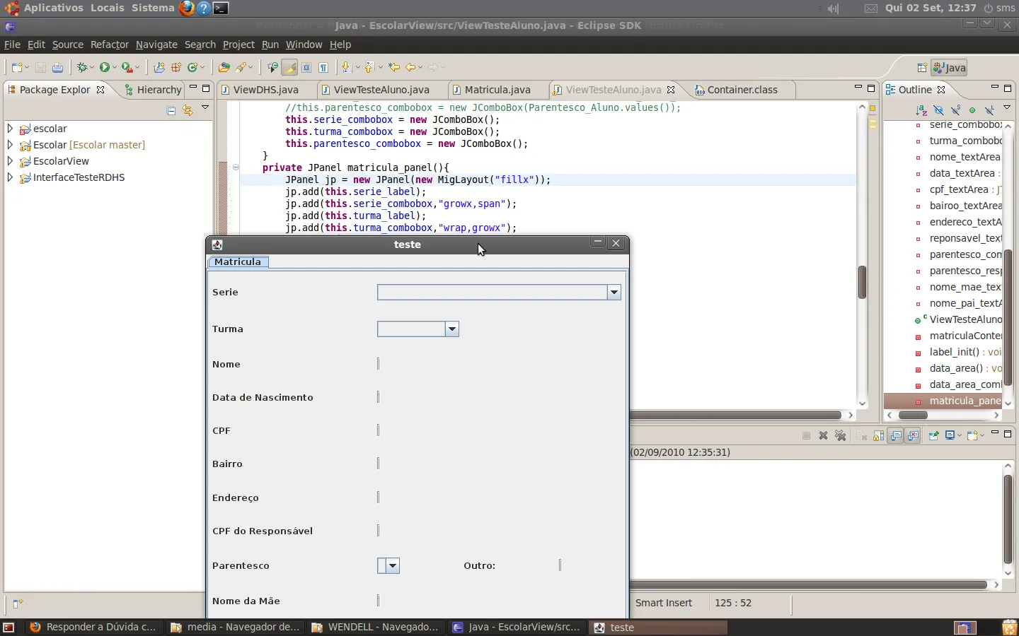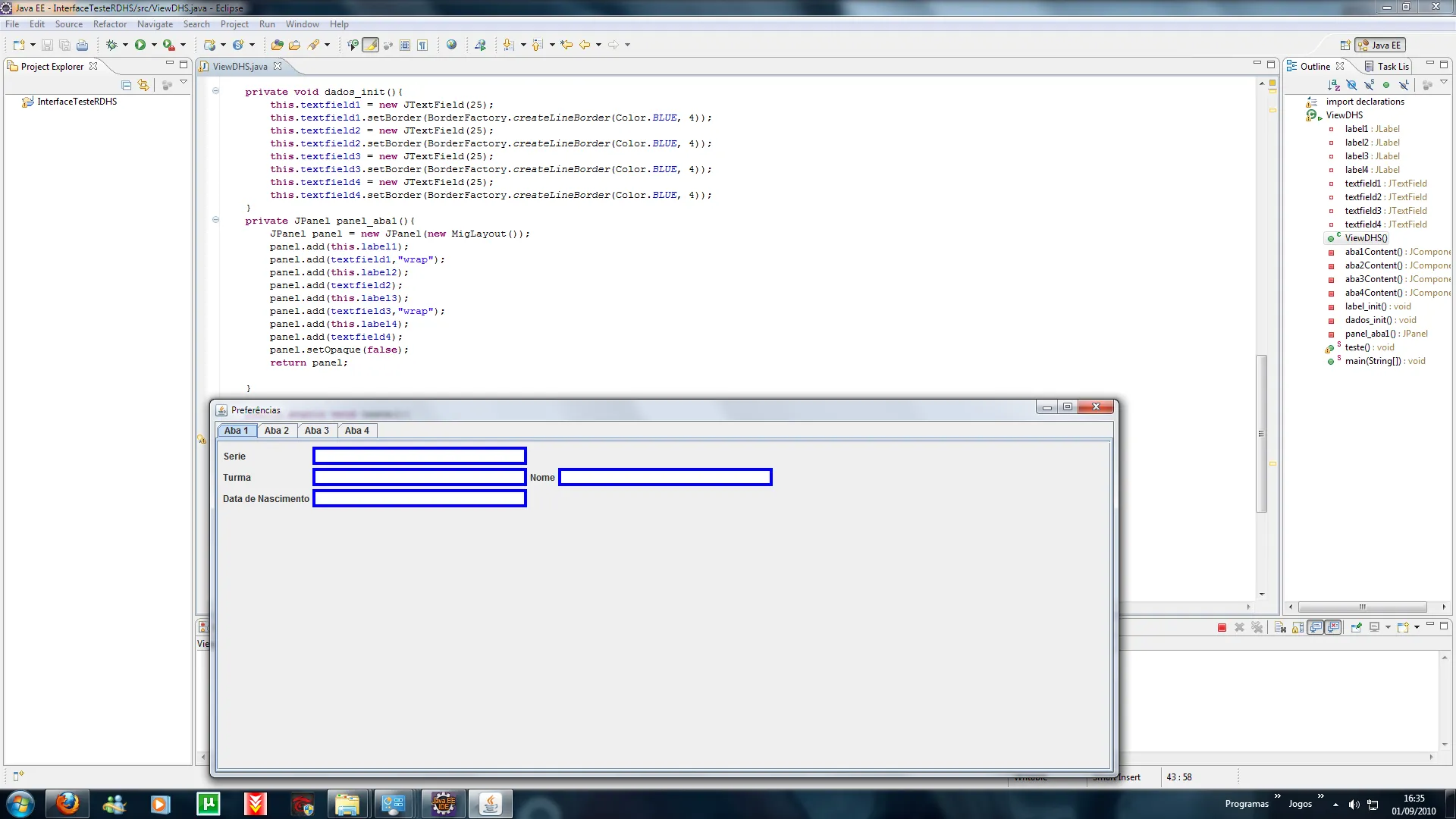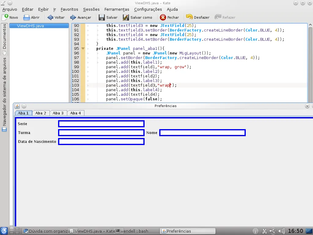 O growx também não funciona, o miglayout só cresce no máximo até a quantidade de elementos que estão inseridos, e eu quero que o segundo elemento cresça até a largura total do painel. Eu usei “fill” e também usei “fillx” no construtor, mas apesar de eu ter conseguido que o textfield ocupasse toda a largura, os label’s ficaram muito separados dos jtextfield’s. Estou mandando o screen, queria que a label ficasse próxima do jtextfield. Vlw