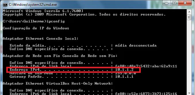 Então, para acessar de outra maquina você precisa ter primeiramente o ip da maquina. Lembrando se for ip dinâmico você precisa pega o ip atual da maquina. Para pegar o ip da maquina vá ao prompt do dos e digite “ipconfig” lá você vai conseguir o ip. Segue em anexo como ver o ip.